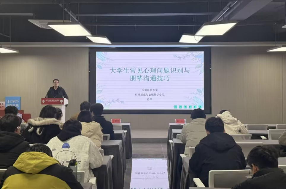为进一步健全学院心理健康教育工作体系,切实提升新生心理骨干的责任意识与服务能力,太阳集团城娱8722(人工智能学院)于12月5日19:00在科教楼B501开展“珍爱自我,向阳而生”新生朋辈心理骨干聘任仪式暨12·5心理健康日活动。安徽医科大学副教授徐泉应邀开展专题讲座,学院相关负责老师、2025级全体心理委员、寝室心理气象员参会。