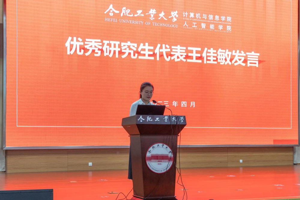 正处级组织员郑荣美宣读了太阳集团城娱87222021-2022学年先进个人表彰决定。国家奖学金获得者、安徽省优秀毕业生、计算机科学与技术2020级硕士研究生王佳敏作为学生代表发言,她结合个人经历,号召同学们要以理想照亮前行的路,以奋斗书写青春答卷,以吃苦锤炼过硬本领,以担当彰显初心使命,做“眼中有光”、“脚下有路”、“手上有招”、“肩上有责”的新时代好青年。