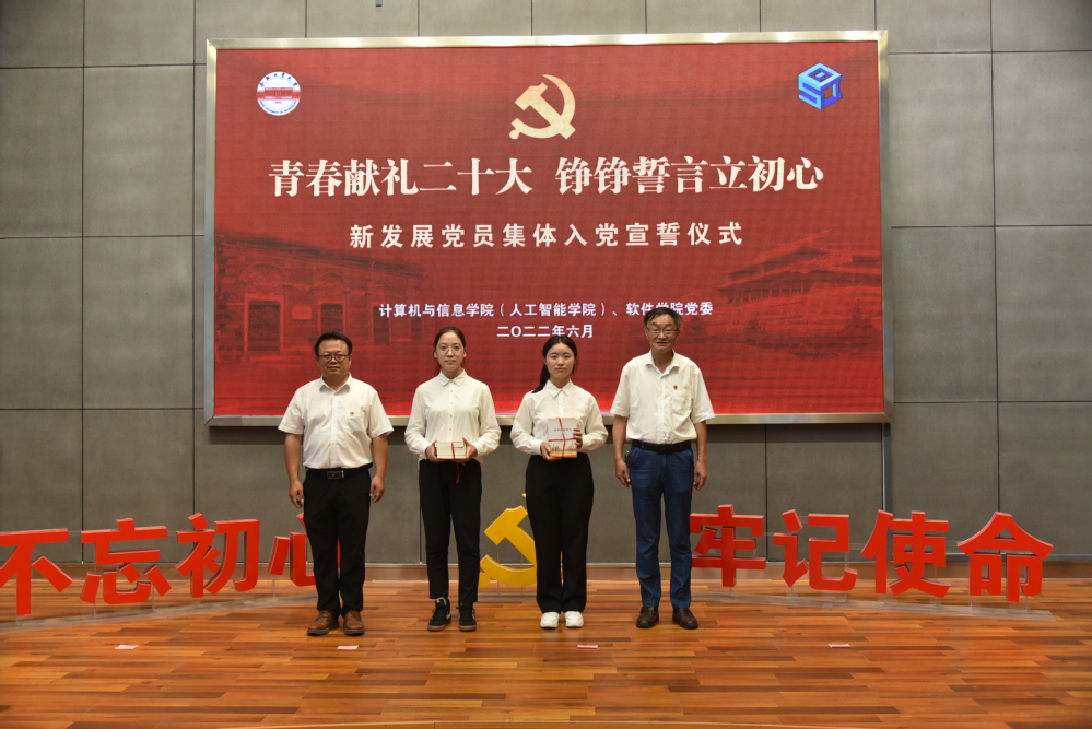 集体入党宣誓仪式在庄严的国歌声中开始。年永琪、郑荣美共同为2022年上半年新发展的党员代表赠送了《中国共产党简史》《改革开放简史》《社会主义发展简史》《中华人民共和国简史》四本学习书籍。