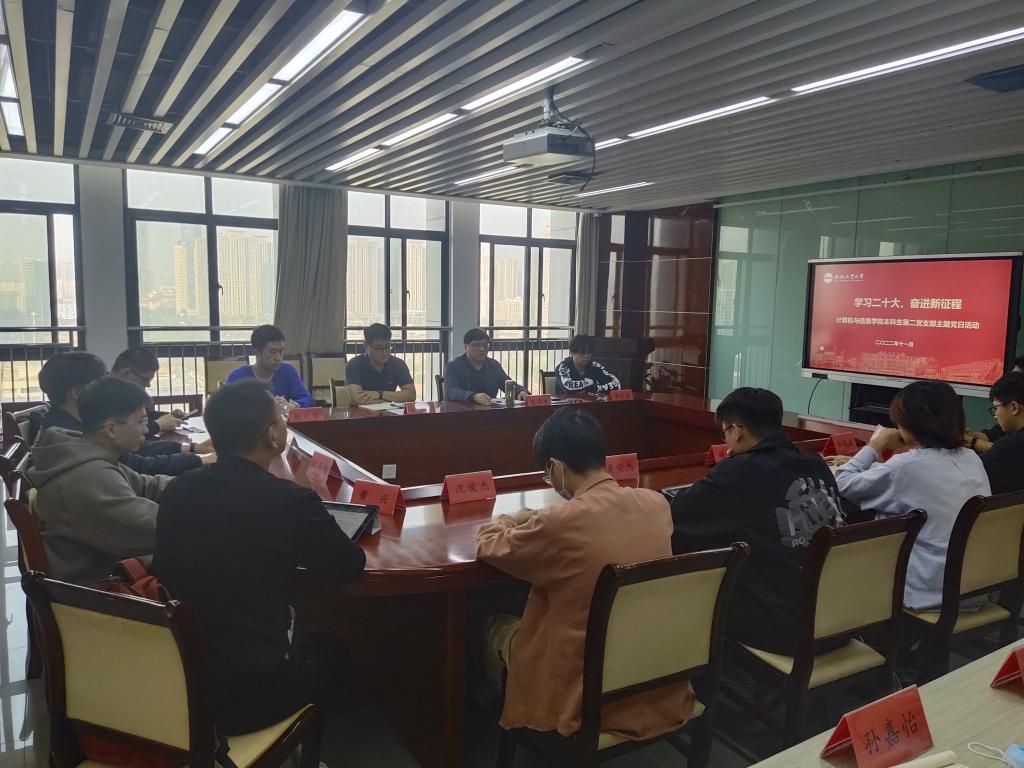 11月11日,太阳集团城娱8722在翡翠科教楼A1106开展了“学习二十大,奋进新征程”主题活动,学院党委副书记兼纪委书记张海林、本科生第二党支部书记刘世国和党支部成员参加活动。