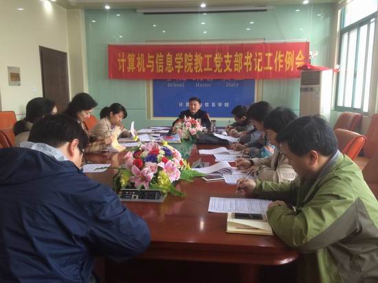 为推动教工党支部标准化建设,进一步做好学院教工党支部工作,2017年4月1日上午,学院党委在屯溪路校区科技楼516会议室召开了全院教工党支部书记工作会议。学院党委书记和10个教工党支部书记参加了会议,会议由学院党委书记祖权主持。