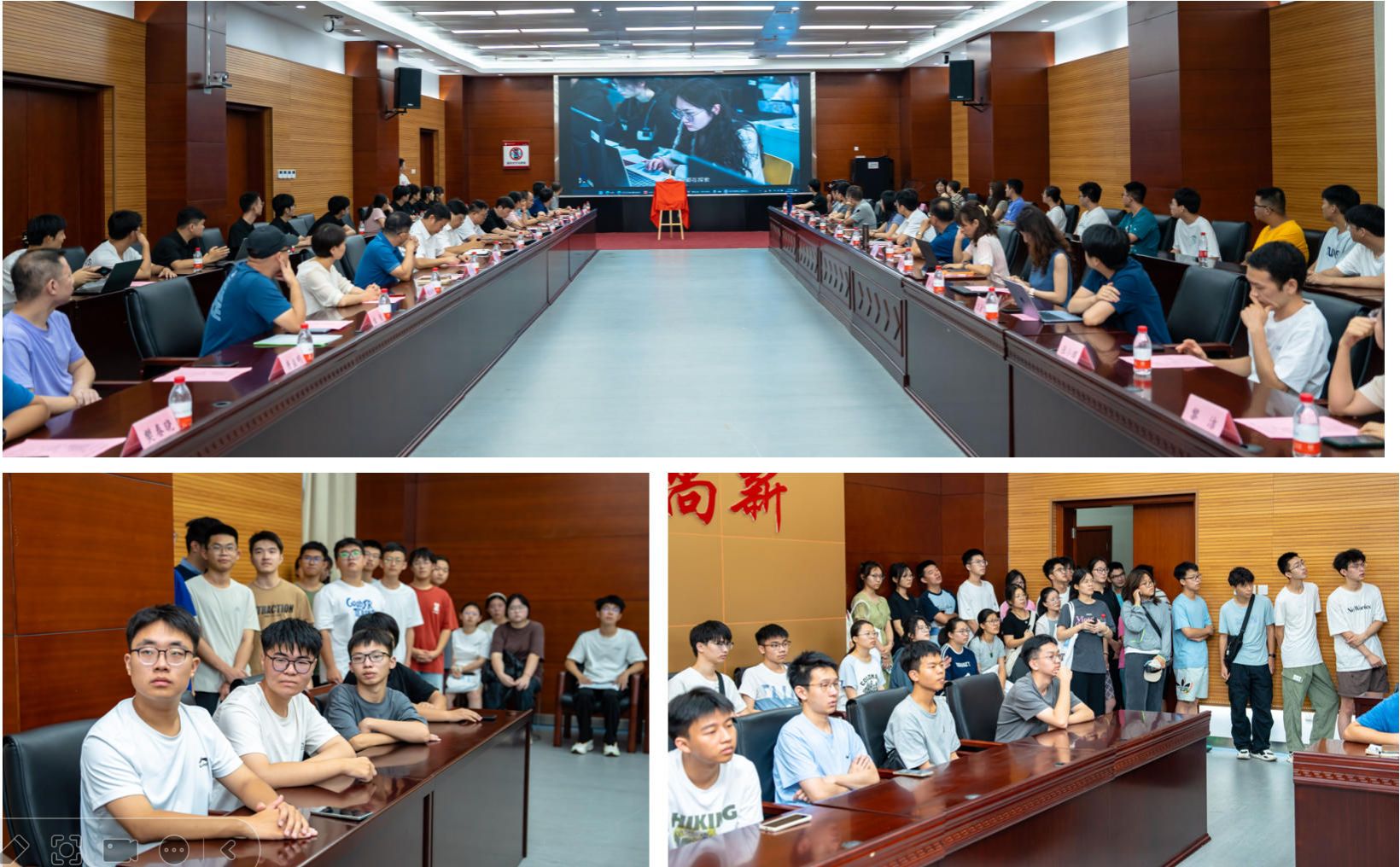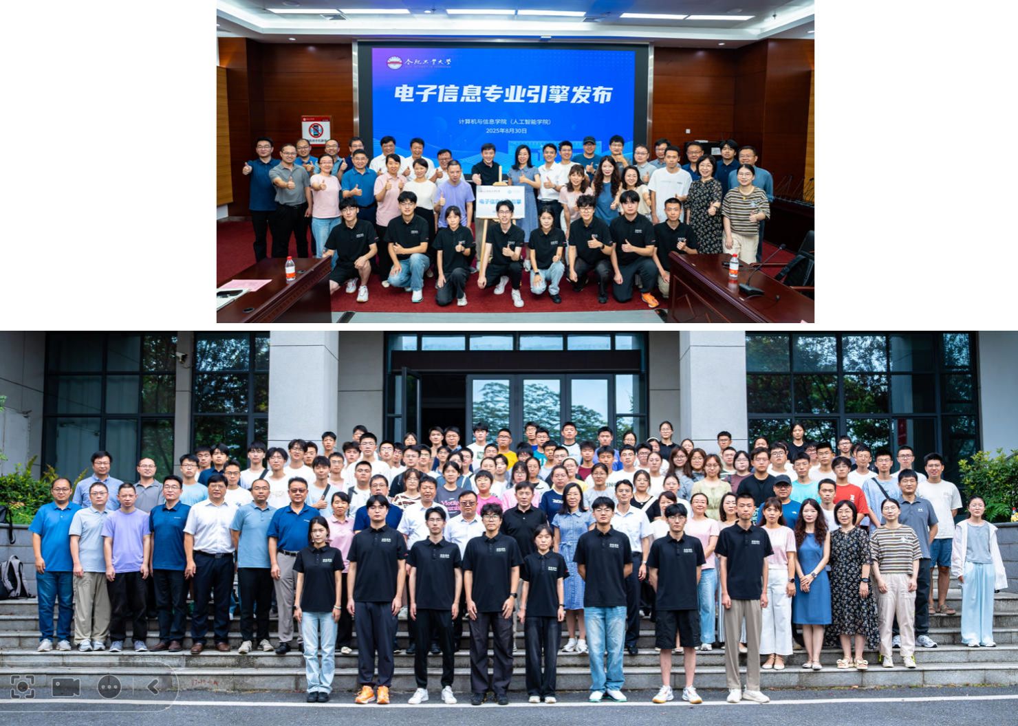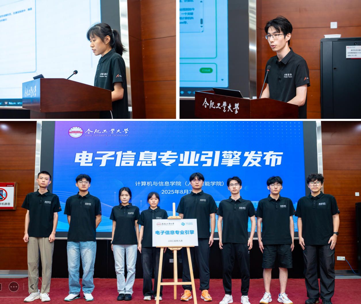 发布会上,首先播放了电子信息专业引擎的宣传短片;随后进行了该专业引擎的揭牌仪式;紧接着由学生团队代表吴文杰(8827太阳集团通信工程专业)和夏童川(北京邮电大学软件工程专业)演示了该专业引擎的主要功能;在学生团队集体亮相后,教务处处长张莉高度赞许了我院在拔尖创新人才培养方面的各项举措,希望我院在教育数字化转型方面做出更多示范性工作;洪日昌院长感谢了教务处对我院教学改革工作的支持,号召大家在AI赋能高等教育的赛道上继续开拓创新,助力我校人工智能教育高质量发展!