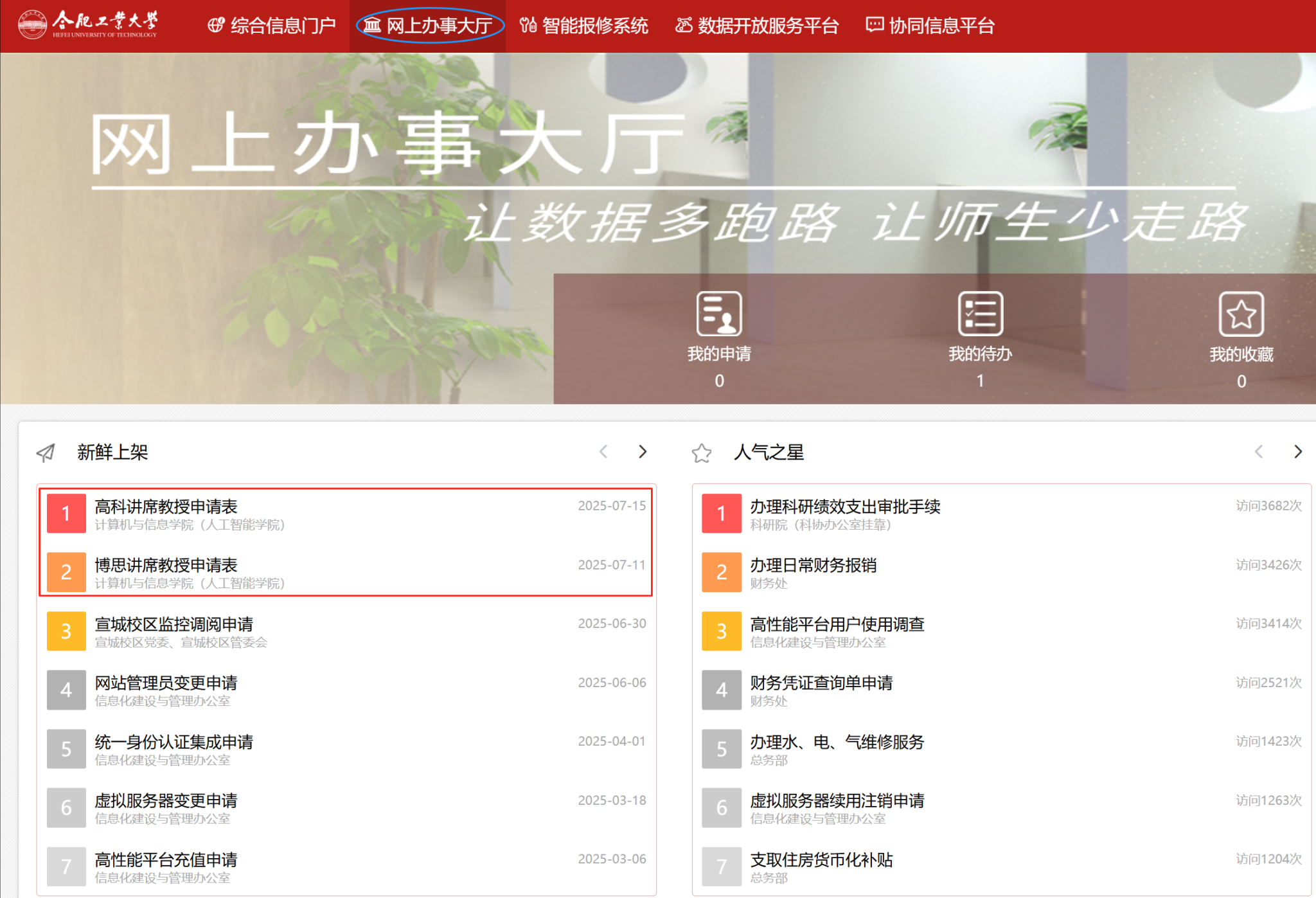 “网上办事大厅”-《高科讲席教授申请表》《博思讲席教授申请表》